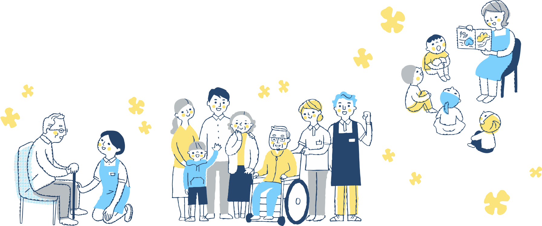 サンライズグループでは、高齢者福祉、介護、障がい福祉、保育、児童発達など、 さまざまなニーズにお応えするサービスをご提供しています。