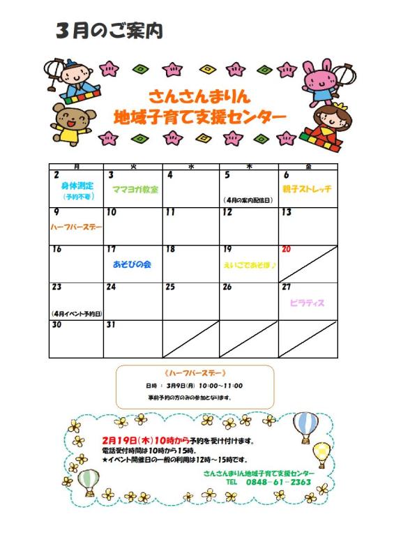 【さんさんまりん地域子育て支援センター】3月のご案内🎎🎎🎎