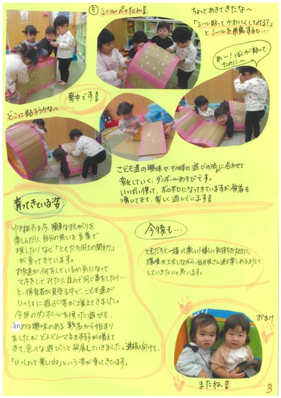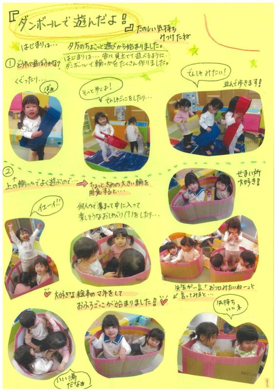 【さんさんまりんこども園】1歳児クラス活動☆ダンボールで遊んだよ✨✨