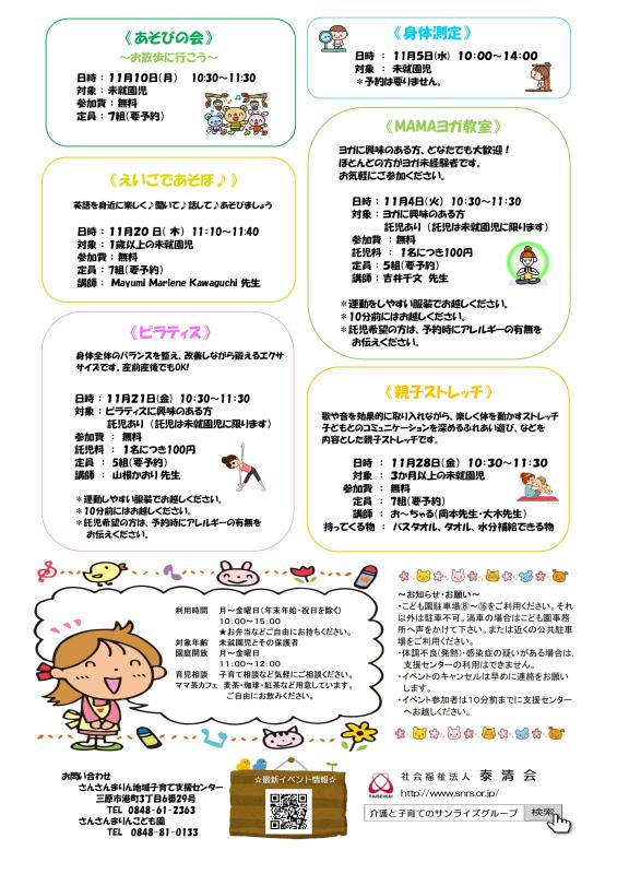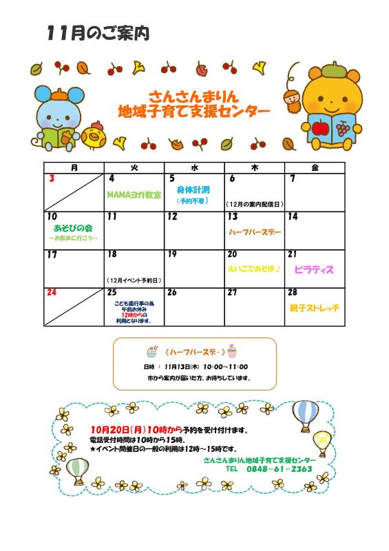 【さんさんまりん地域子育て支援センター】11月のご案内🍁🍁🍁