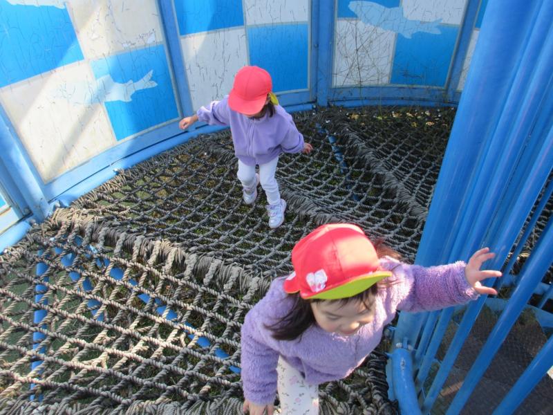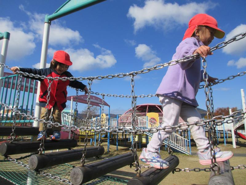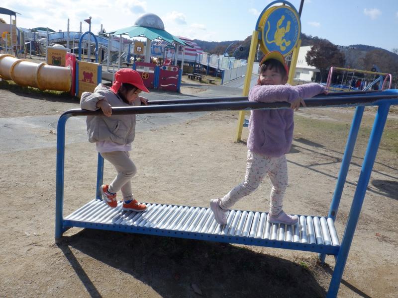 ローラーの滑り台や揺れる吊り橋など、たくさん遊びました。