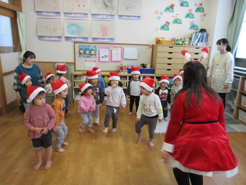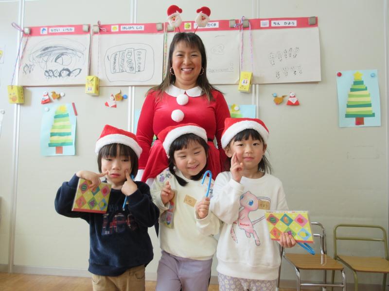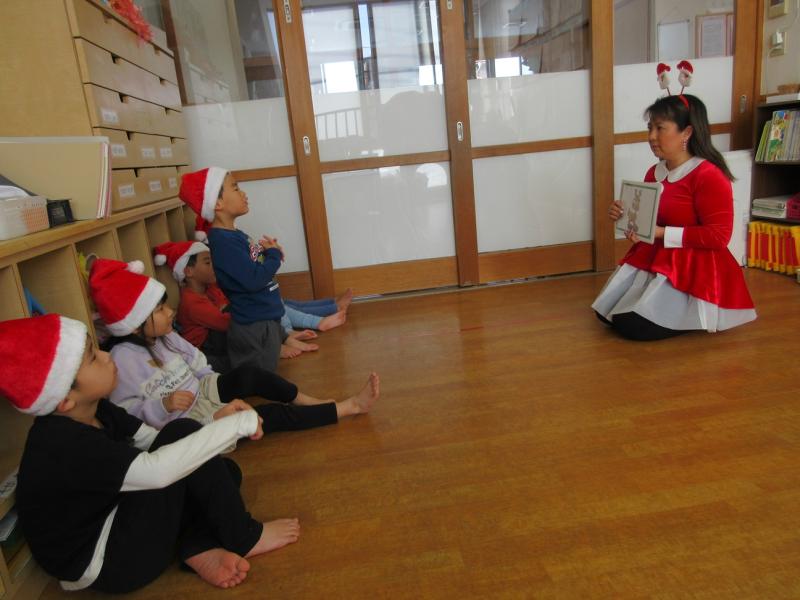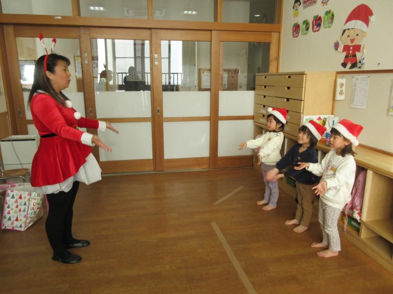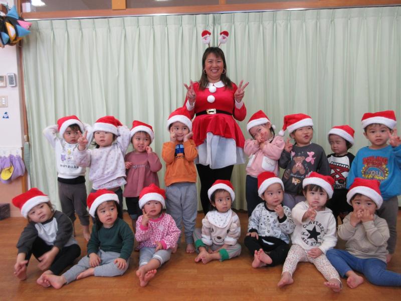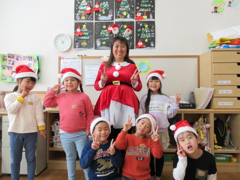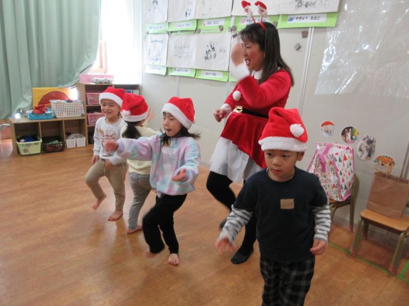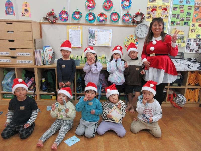 今回は、12月だったので先生がサンタの衣装で登場!!