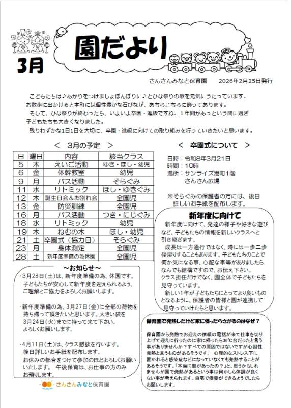3月園だより