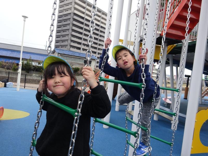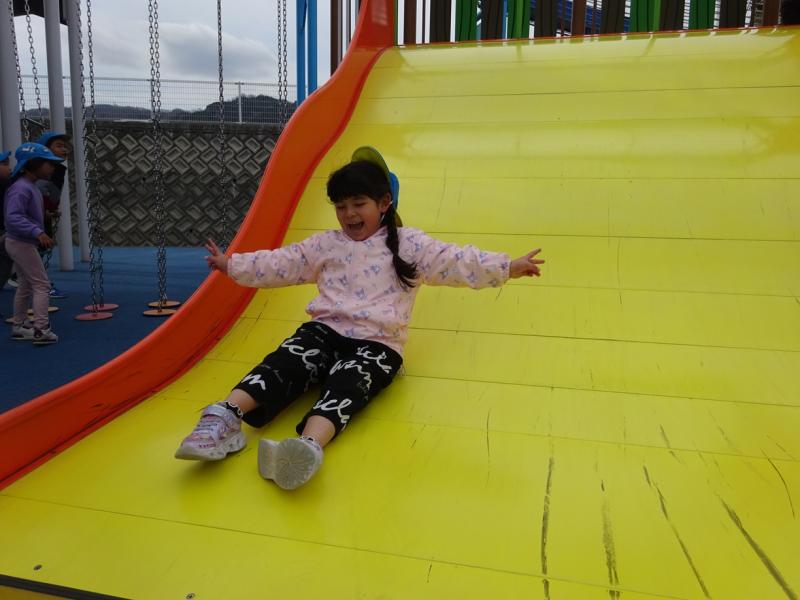 子どもの国ポムポムでは、大きな遊具に「わぁ~大きい!早く遊びたい」と大喜び。