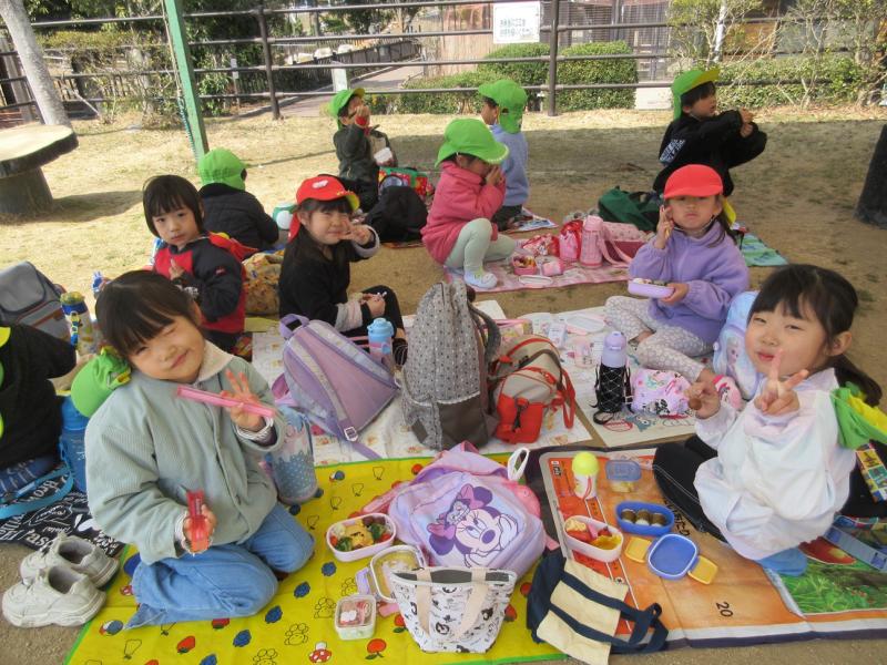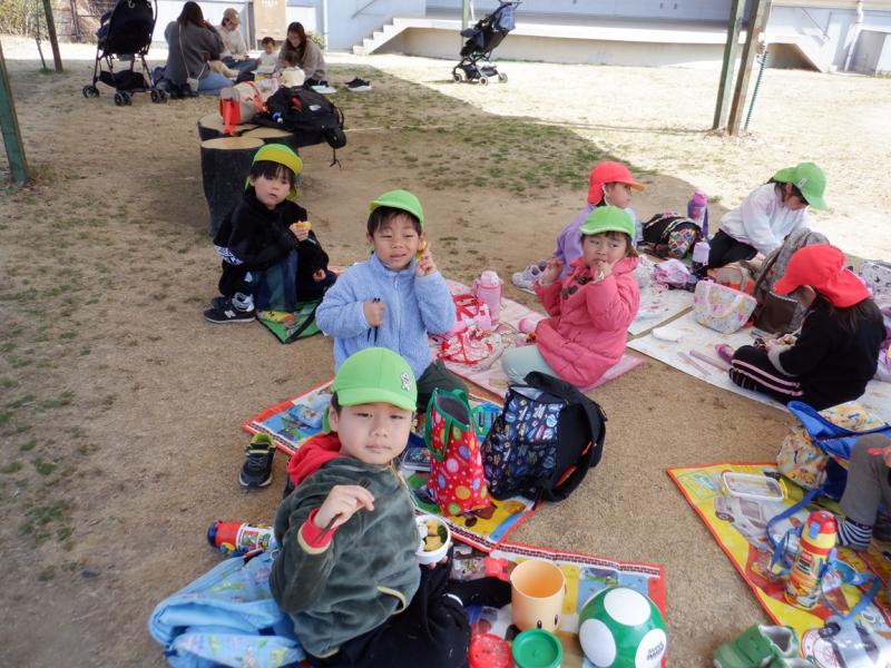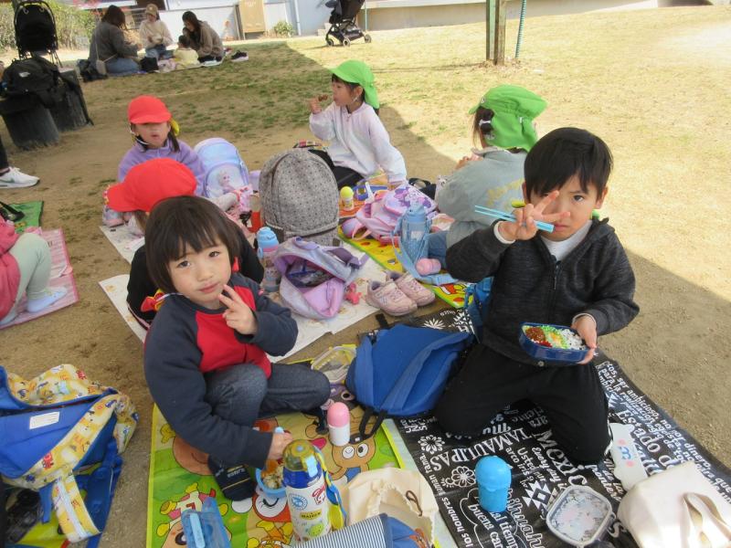お昼は、みんなでお家の人が作ってくれたお弁当を食べました。