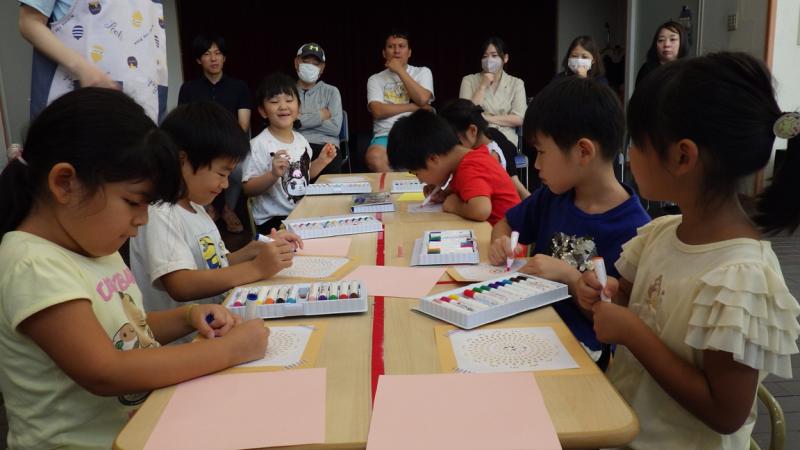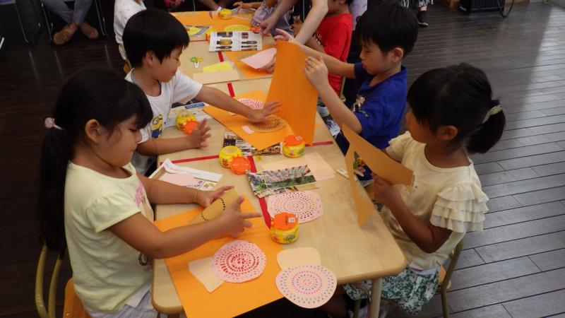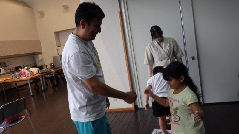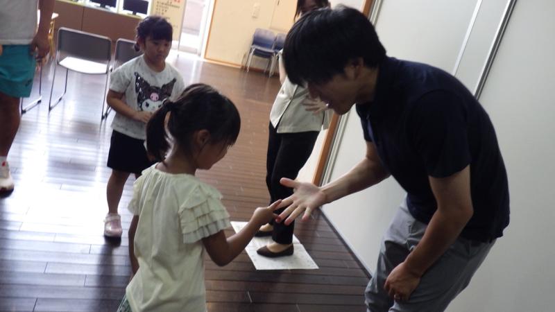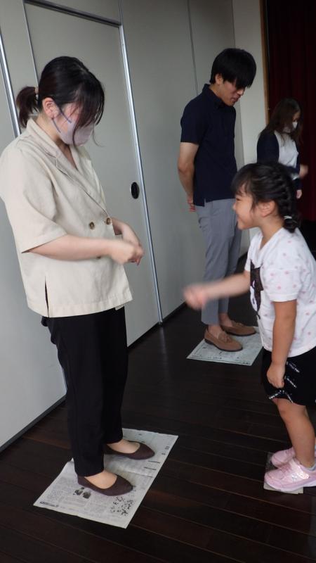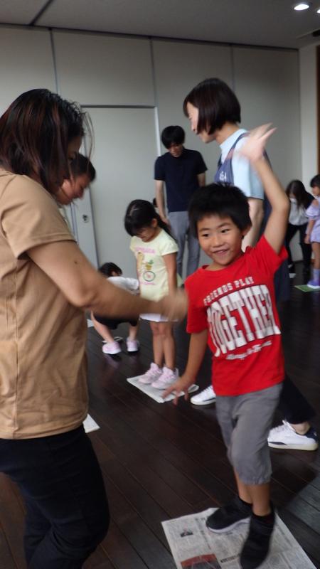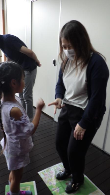 その後、きのこの製作をしている所を見て頂いて、最後はお家の人と新聞紙じゃんけんをして