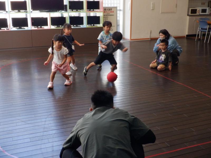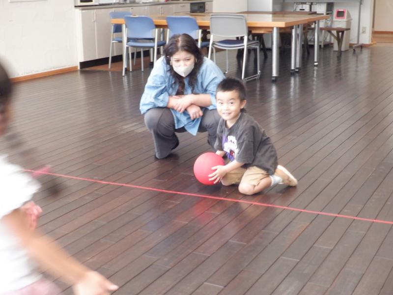 貨物列車、ロンド橋を見てもらい子どもたちが大好きな転がしドッチをお家の人と