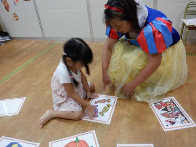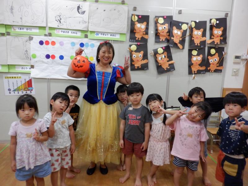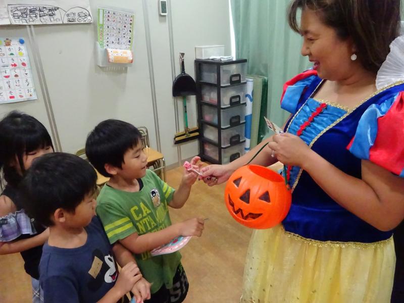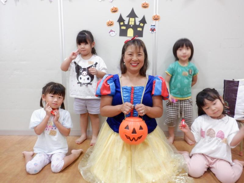 10月がハロウィンの月なので、講師の先生が白雪姫の仮装をしてきてくださり、