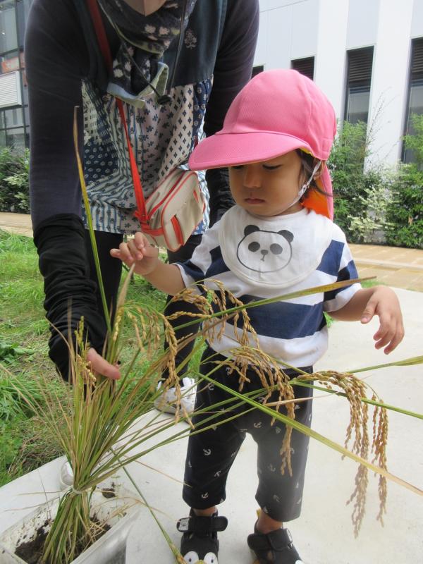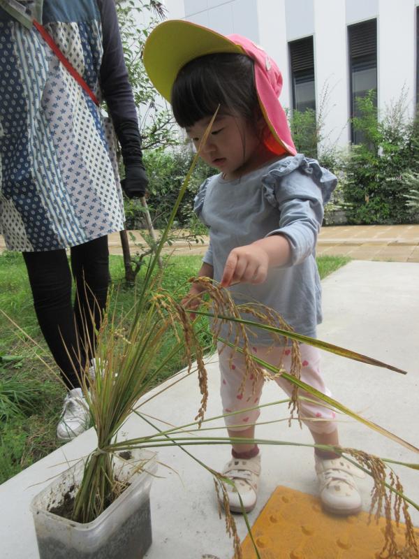 「ここにお米さんが入っているんだよ」と話し、みんなでゆっくり見ました。
