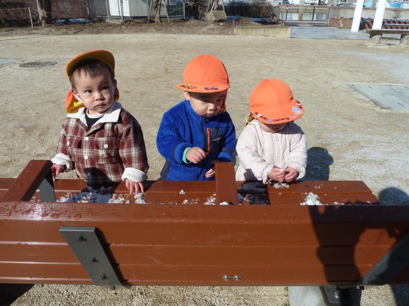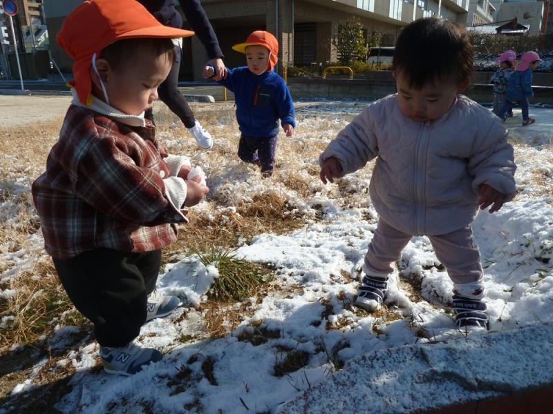 最初は「あれ?なんだ?」と雪をじっと見つめていたひかり組さん。