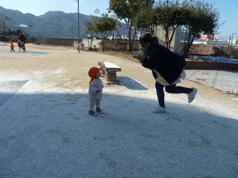 いつも遊びに行っている公園に雪が沢山積もっていたので、しっかり初雪を楽しみました。