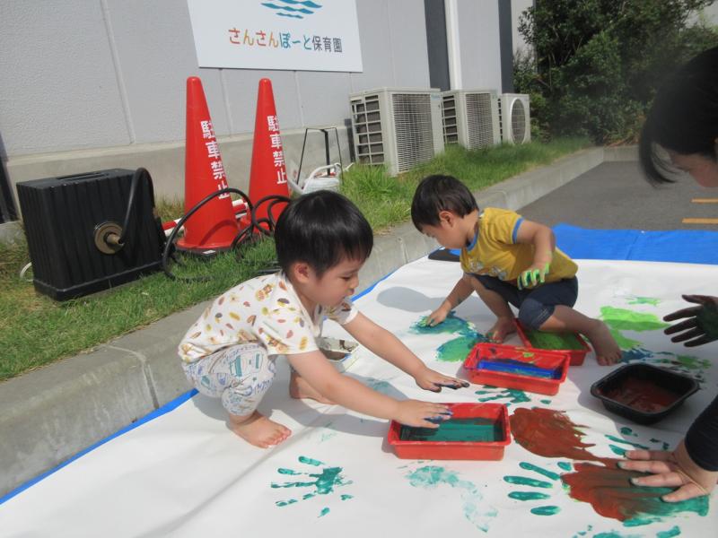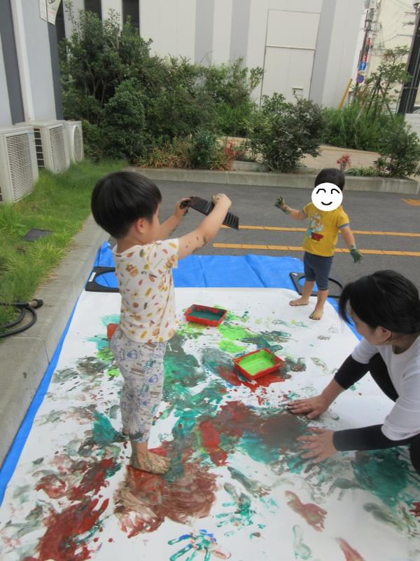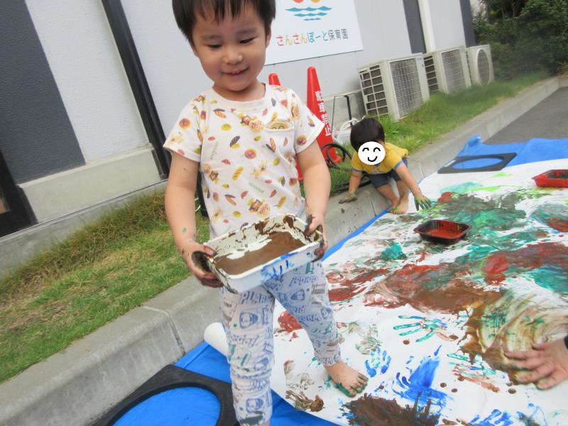 手からだんだん足もやってみる~と最後は全身で楽しみました。